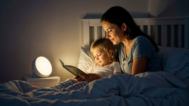 - Создайте ритуал. Введите расслабляющую цепочку из 3–4 действий, строго повторяющихся каждый вечер: тёплая ванна (через 1–1,5 часа после ужина). Спокойная сказка/разговор при приглушённом тёплом свете (жёлтые оттенки, без люстры). Массаж спины или спокойная музыка. Пожелания спокойной ночи.